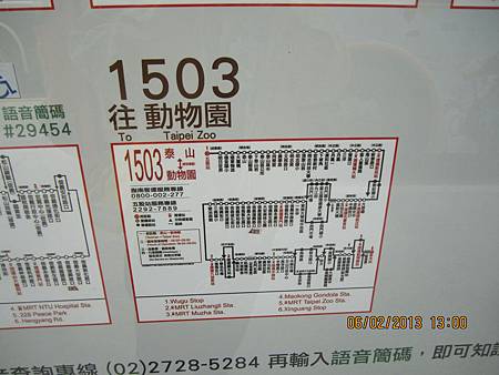 12:55~13:25 搭乘1503至捷運木柵站(12元)